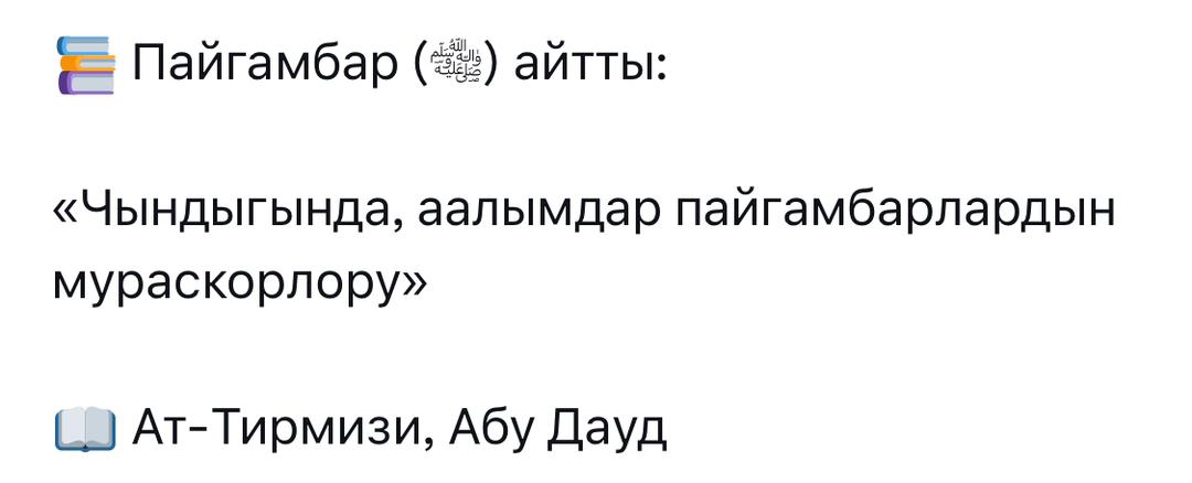 Ассаламу ъалайкум. Бул группанын максаты Тогуз-Булак айылындагы имамдарды, болочоктогу устаз жана аалымдарды колдоо болуп саналат. Өзүбүз динди элге кыйратып жеткизе албасак дагы элге динди жеткирүүчү, динге мээнет кылуучу адамдарды ар-тараптан колдоого алалык. Колдойм дегендер группага ссылка аркылуу кошулсаңыздар болот. Динге жана аны жайылтуучуларга асылгысы келгендер болсо группадан алыс болсоңуздар.